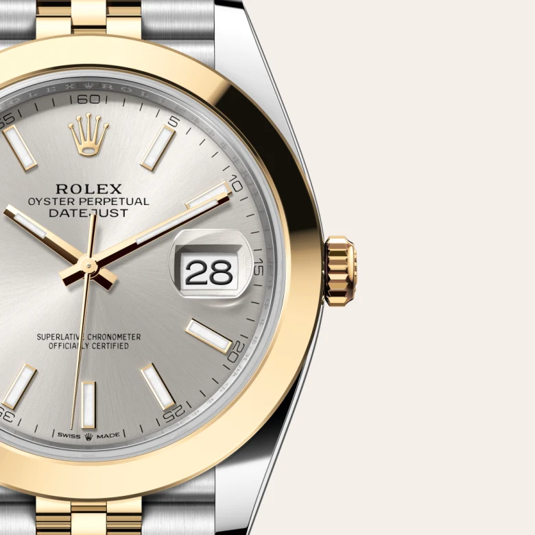 The design, development and production of Rolex bracelets and clasps, as well as the stringent tests they face, involve advanced high technology. And, as with all the components of the watch, aesthetic controls by the human eye guarantee impeccable beauty. The Jubilee, a supple and comfortable five-piece link metal bracelet, was designed and made especially for the launch of the Oyster Perpetual Datejust in 1945.