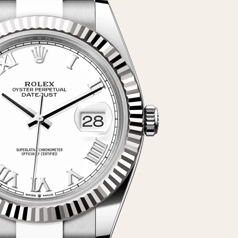 The Rolex fluted bezel is a mark of distinction. Originally, the fluting of the Oyster bezel had a functional purpose: it served to screw the bezel onto the case helping to ensure the waterproofness of the watch. It was therefore identical to the fluting on the case back, which was also screwed onto the case for waterproofness, using specific Rolex tools. Over time, the fluting became an aesthetic element, a genuine Rolex signature feature. Today the fluted bezel is a mark of distinction, in gold on this Datejust 41.